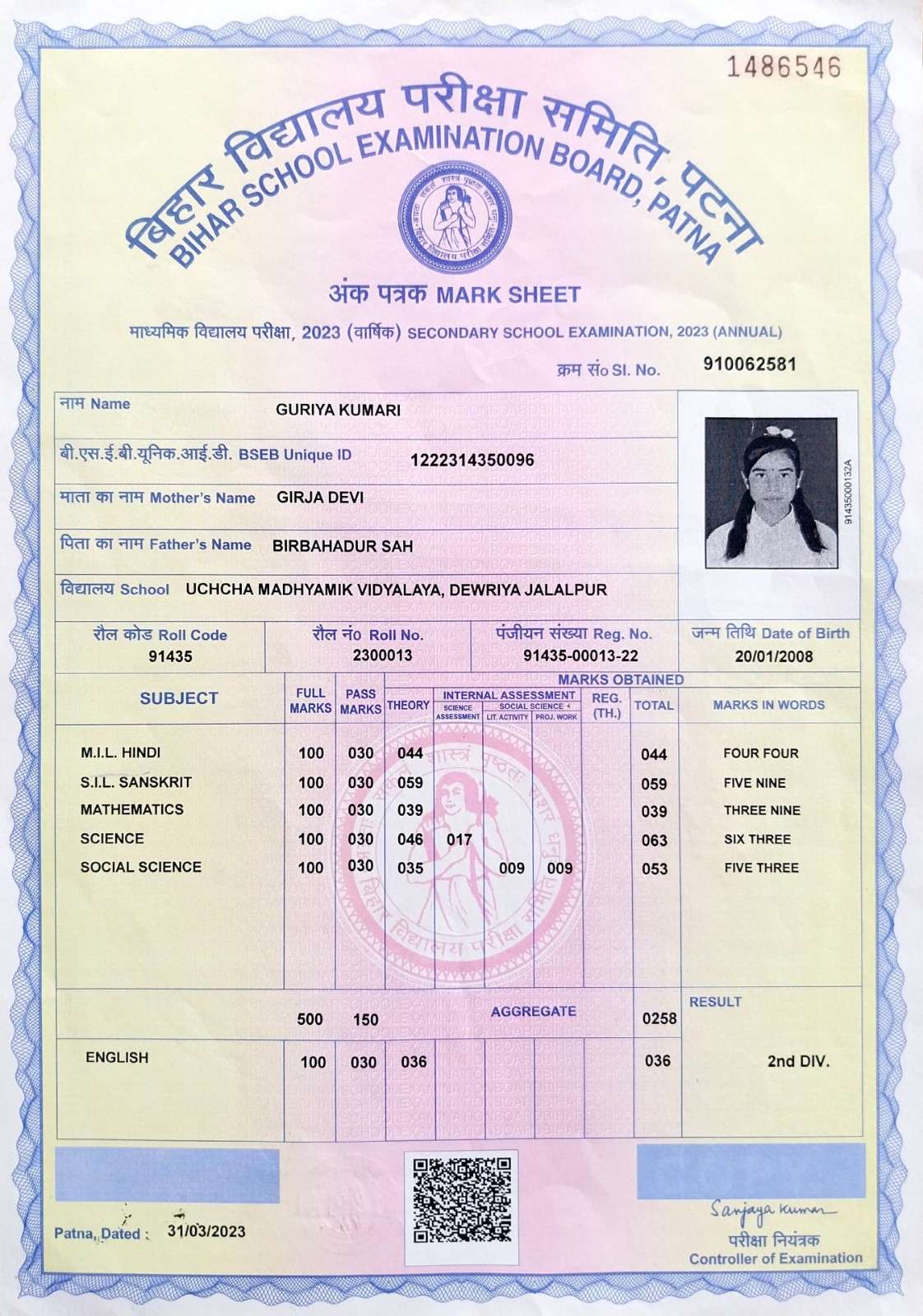 | Exam | Full Marks | Pass Marks | Marks Obtained |
