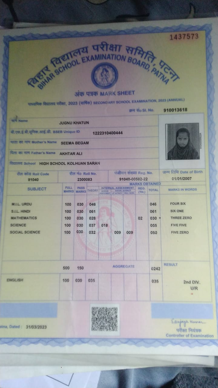 | Exam | Full Marks | Pass Marks | Marks Obtained |