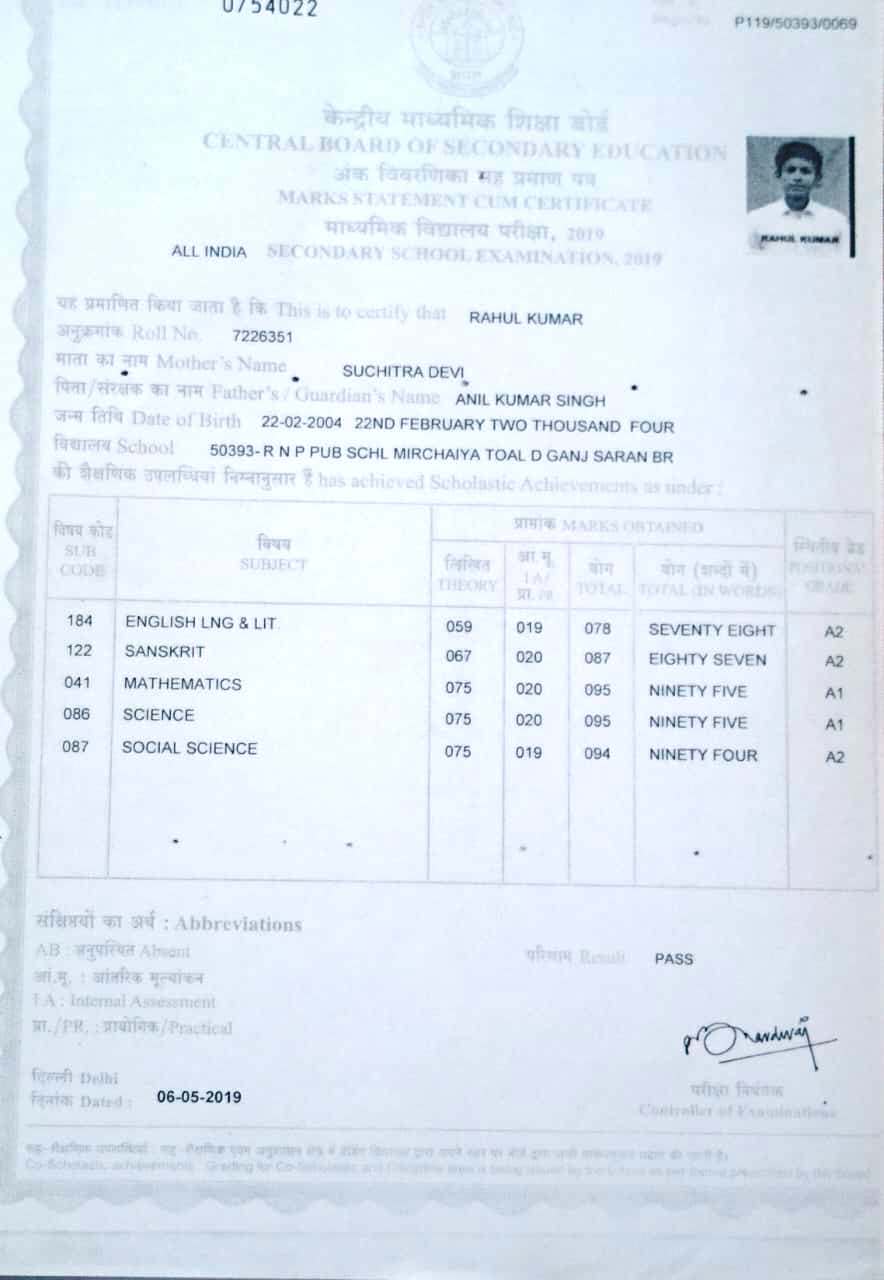| Exam | Full Marks | Pass Marks | Marks Obtained |