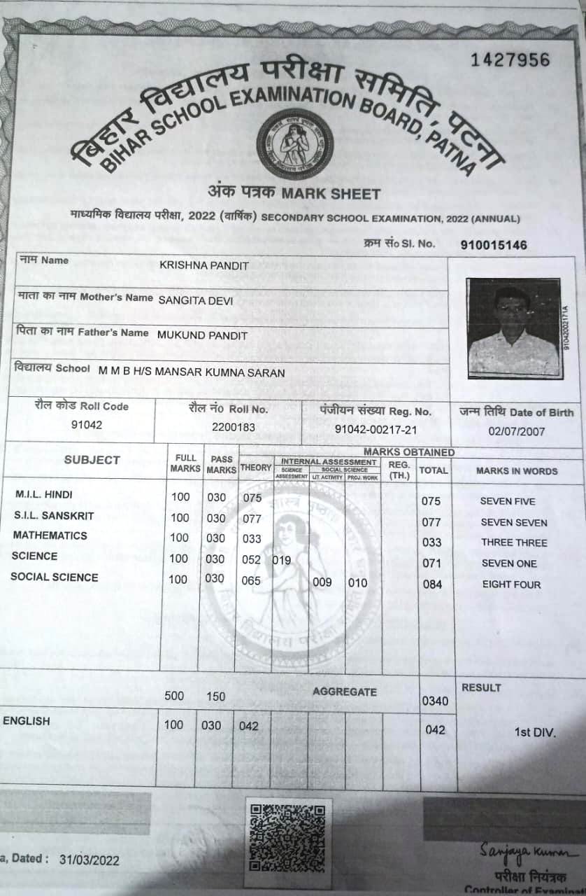 | Exam | Full Marks | Pass Marks | Marks Obtained |