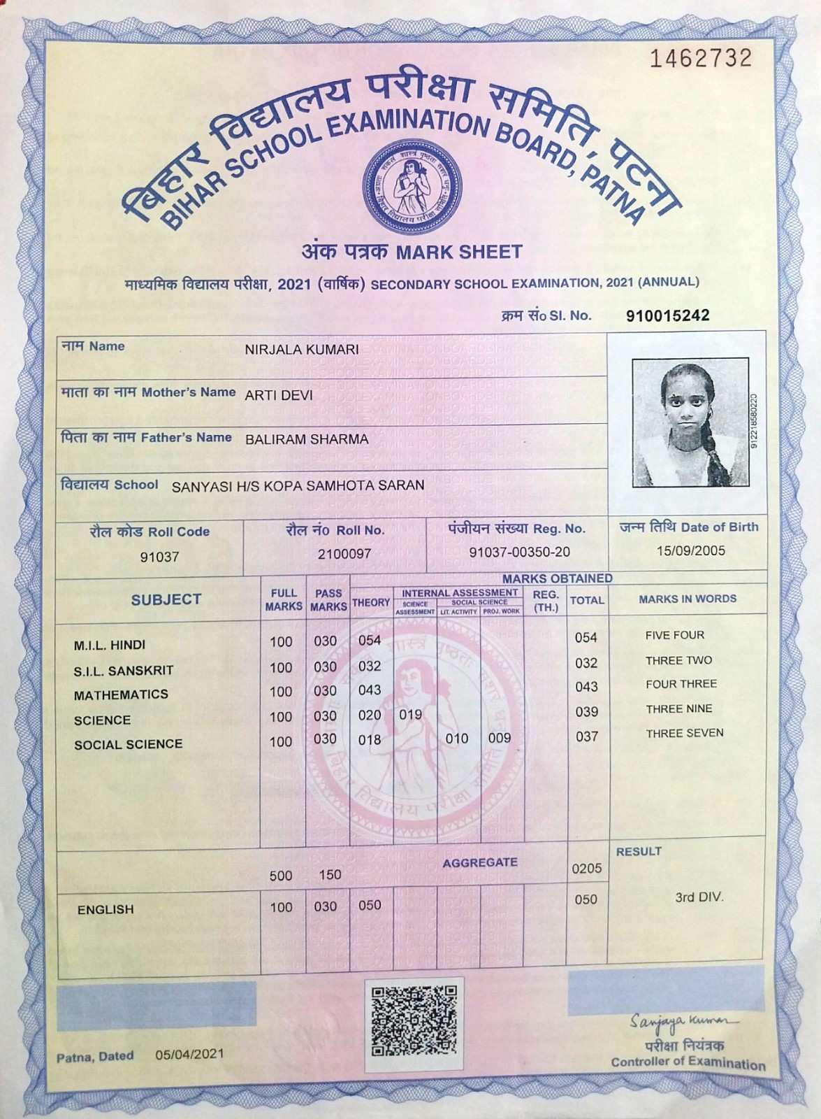 | Exam | Full Marks | Pass Marks | Marks Obtained |
