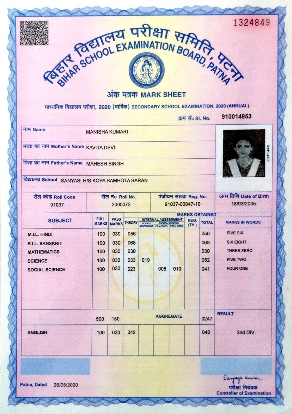 | Exam | Full Marks | Pass Marks | Marks Obtained |