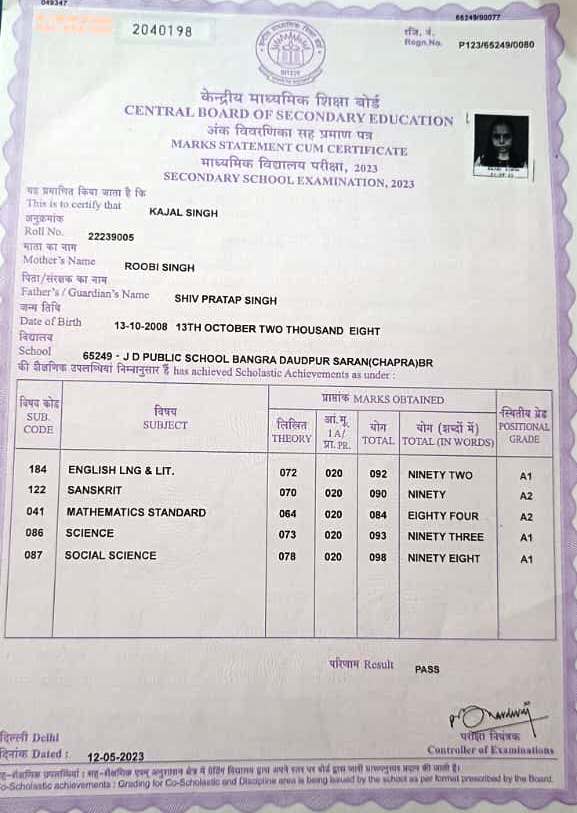 | Exam | Full Marks | Pass Marks | Marks Obtained |