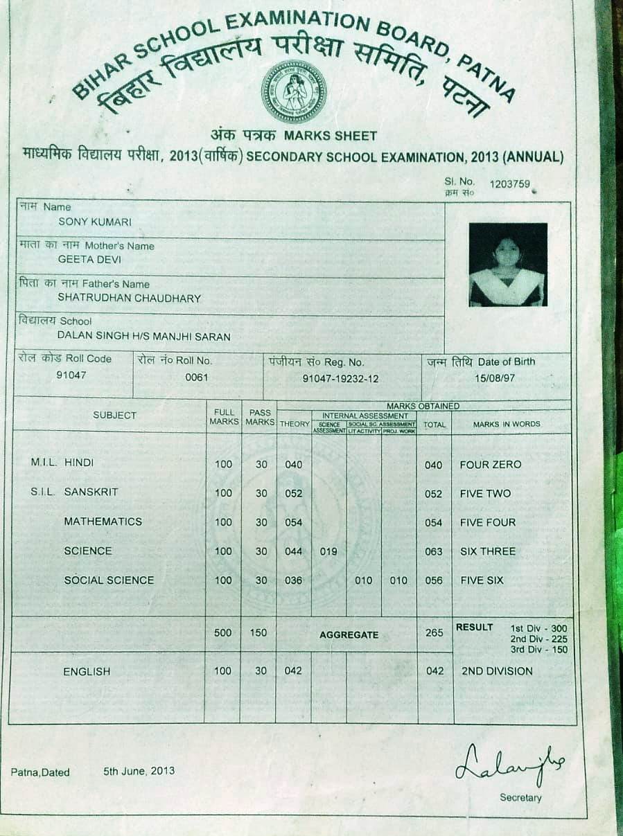 | Exam | Full Marks | Pass Marks | Marks Obtained |