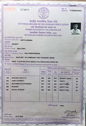 | Exam | Full Marks | Pass Marks | Marks Obtained |