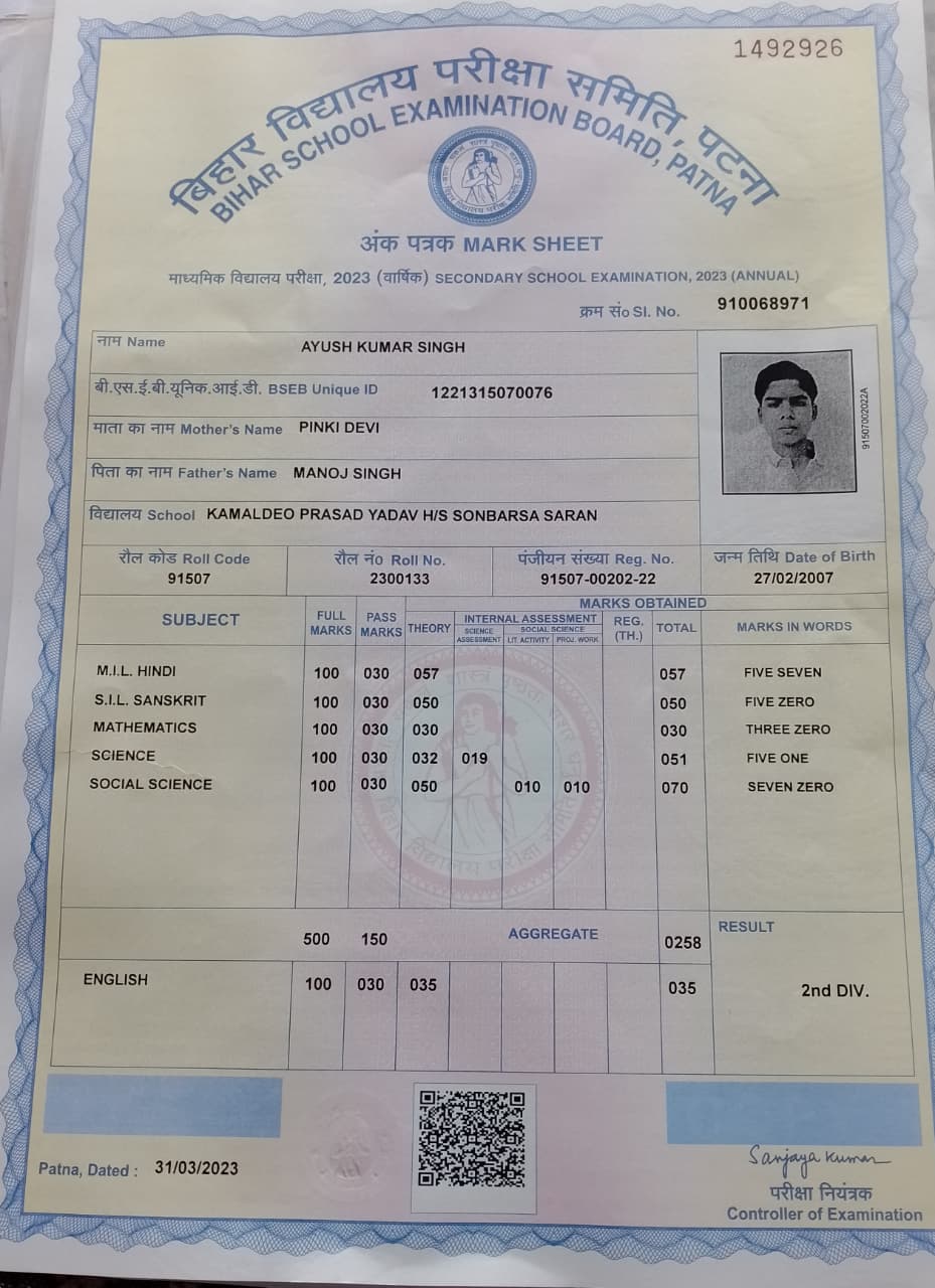 | Exam | Full Marks | Pass Marks | Marks Obtained |