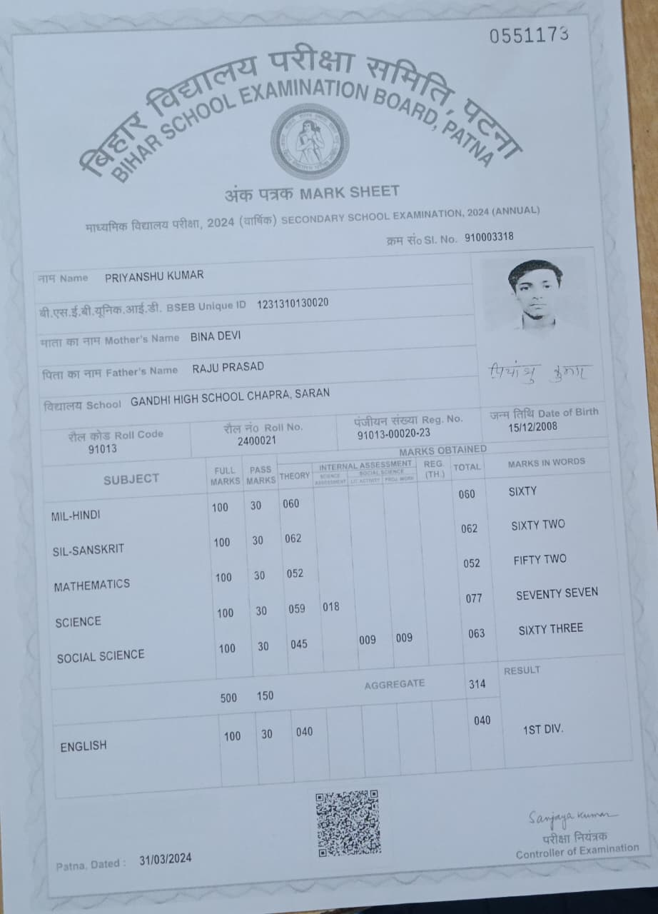 | Exam | Full Marks | Pass Marks | Marks Obtained |