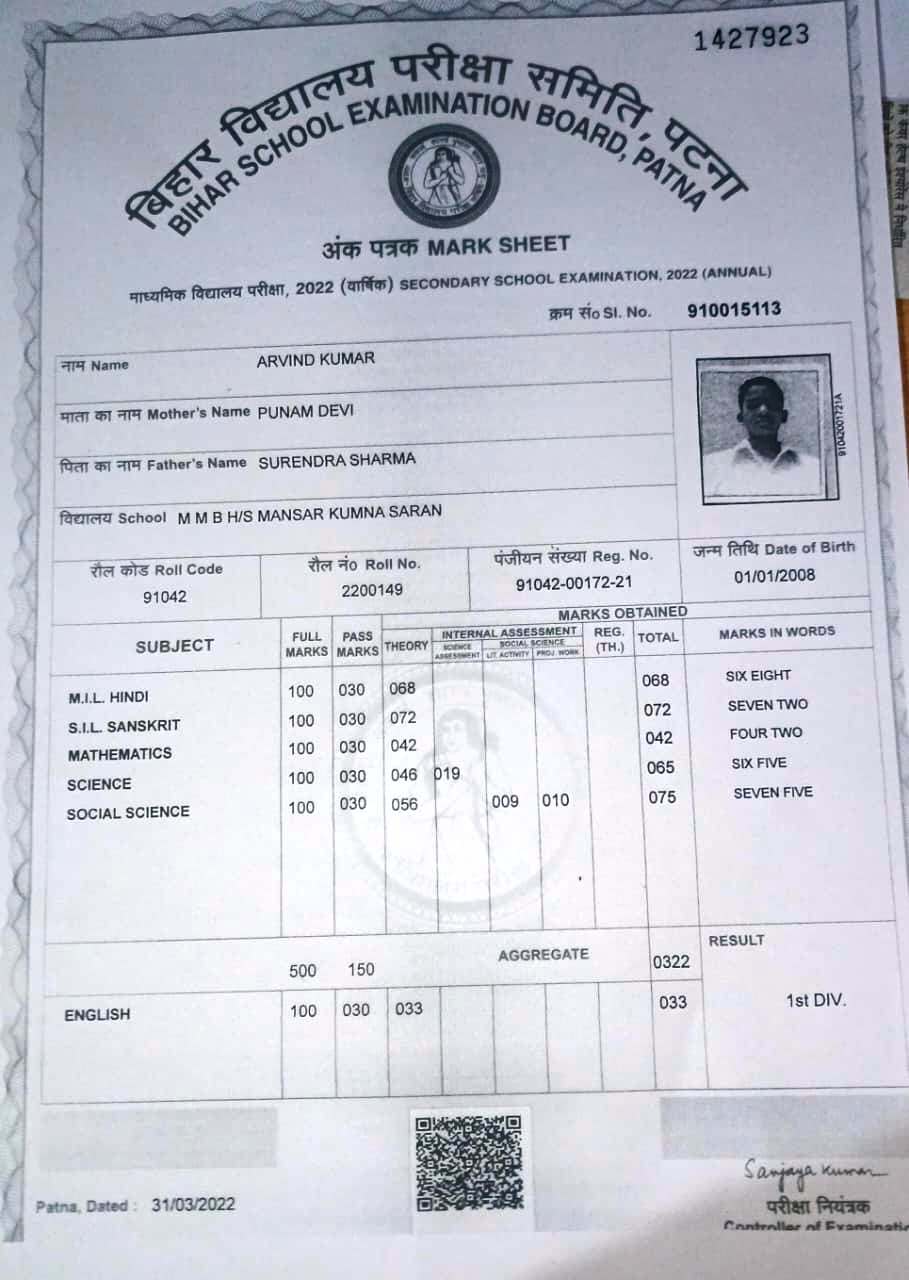 | Exam | Full Marks | Pass Marks | Marks Obtained |