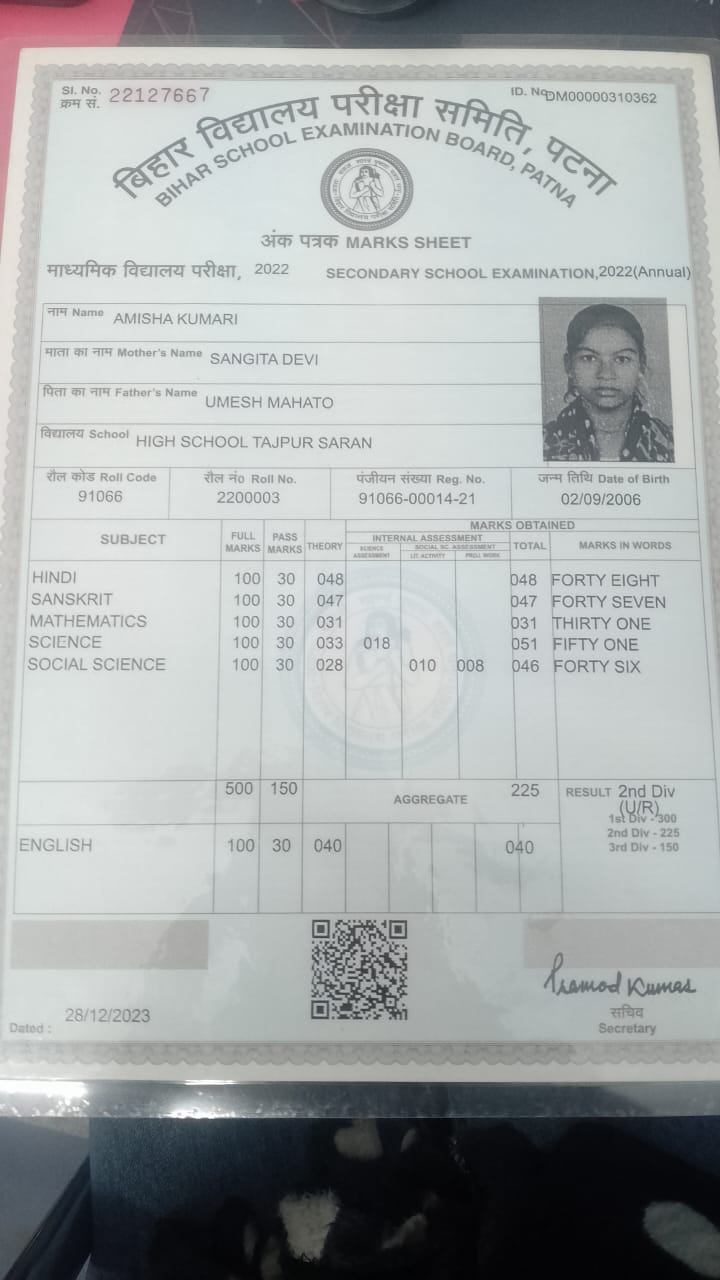 | Exam | Full Marks | Pass Marks | Marks Obtained |