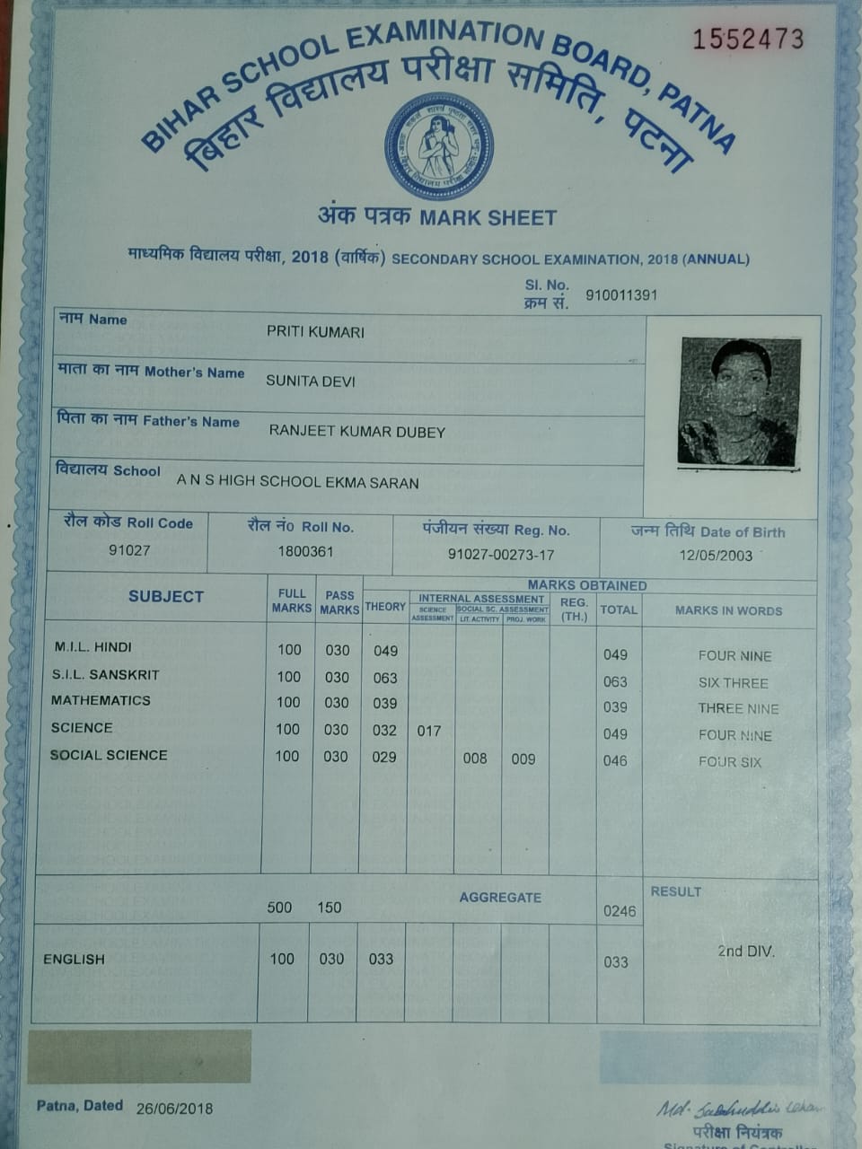 | Exam | Full Marks | Pass Marks | Marks Obtained |