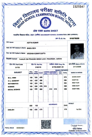 | Exam | Full Marks | Pass Marks | Marks Obtained |