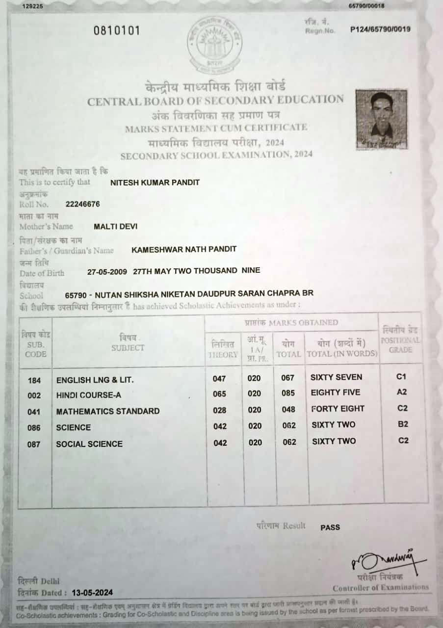 | Exam | Full Marks | Pass Marks | Marks Obtained |