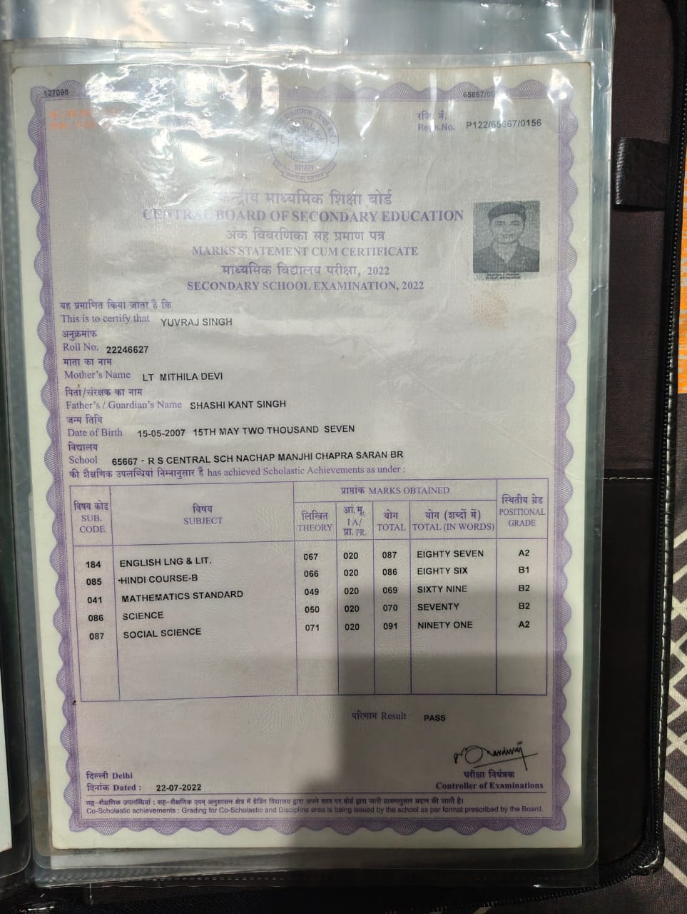 | Exam | Full Marks | Pass Marks | Marks Obtained |
