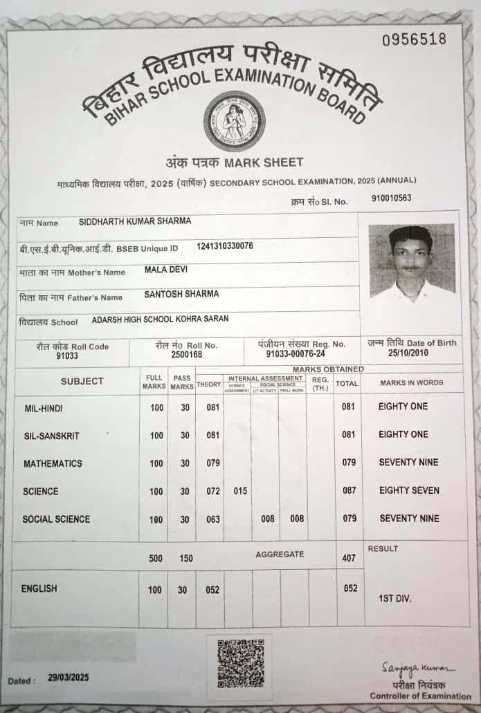 | Exam | Full Marks | Pass Marks | Marks Obtained |
